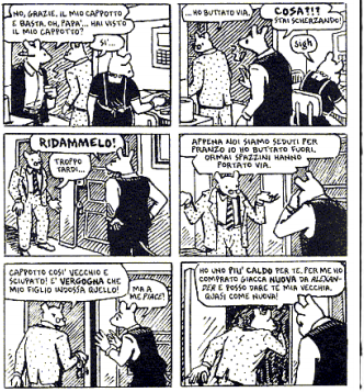 EliminaMi fu regalato questo libro per un Natale e mi lasciò sconcertato. Ero un bambino, ma conoscevo ovviamente la tragedia dell'Olocausto. Vedere però ciò che avevo studiato (come può studiare un bambino delle elementari) in modo così crudo, in un fumetto, fu quasi uno shock. Ora Maus si trova in uno scatolone chiuso in soffitta o in cantina, e spero prima o poi di ritrovarlo.
